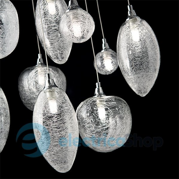 Арматура виготовлена з металу, плафони з дутого скла, декор із ниток. Максимальна висота підвісу – 1255 мм.Характеристики