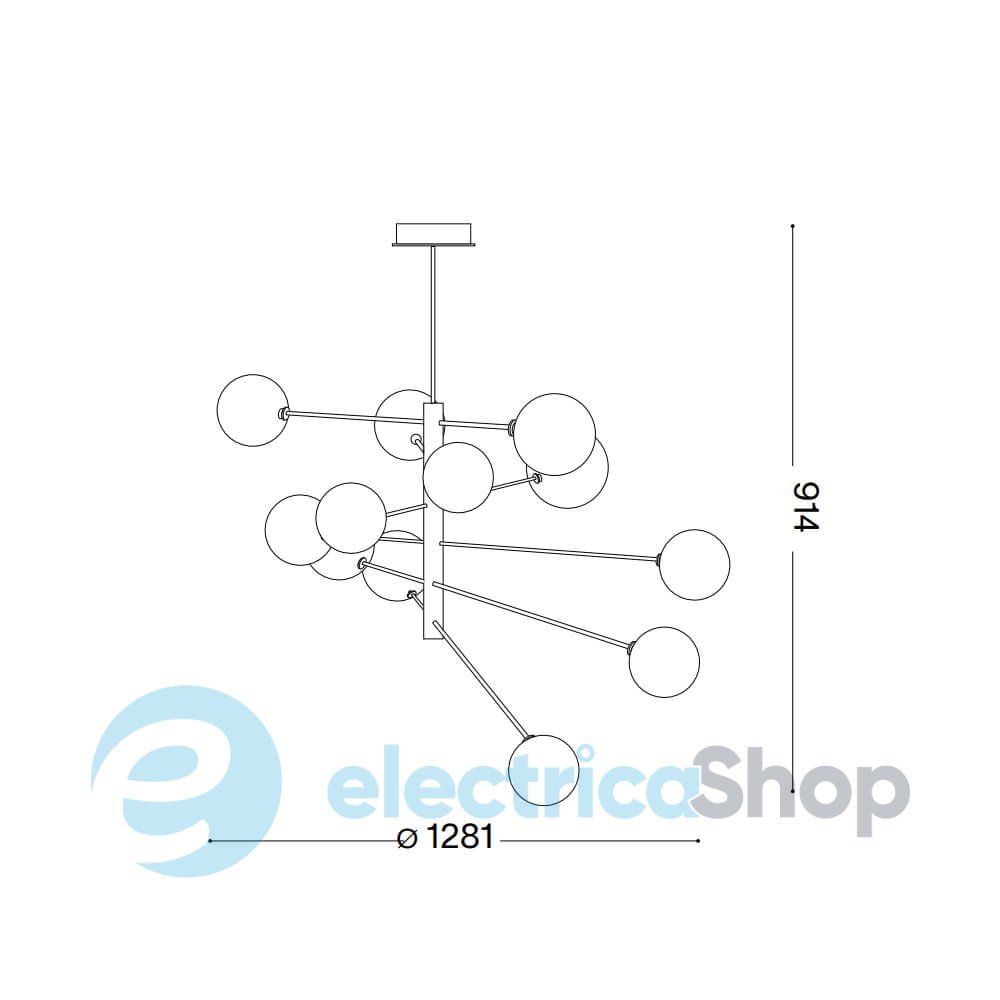 Люстра Ideal Lux Equinoxe SP12 200118 підкреслить індивідуальність вашого будинку, матиме чудовий вигляд у сучасних інтер'єрах. Арматура виготовлена з металу, плафони прозорі з дутого скла.
