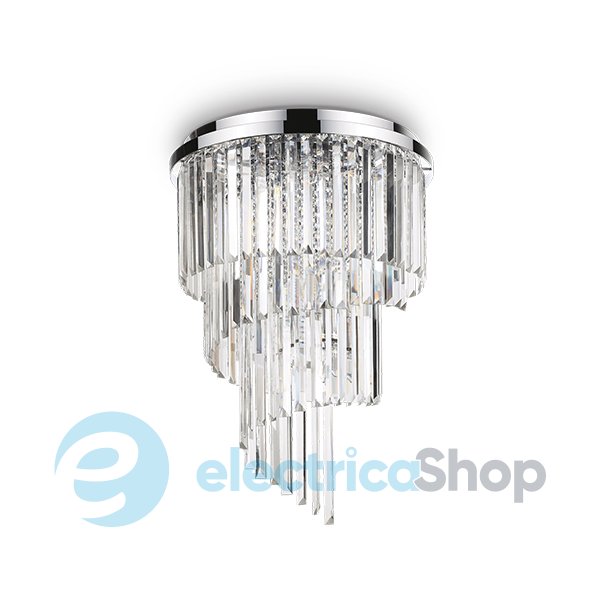 Стельова люстра Ideal Lux Carlton PL12 168937 матиме чудовий вигляд у сучасних інтер'єрах. Виготовлена з металу та кришталю з фацетом.