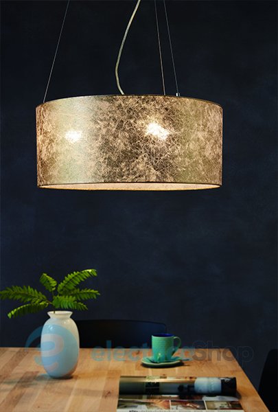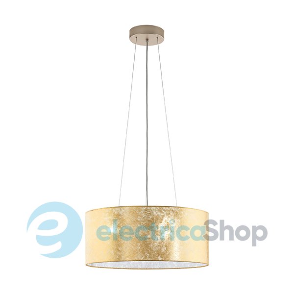 Підвісна люстра VISERBELLA 97644 австрійського бренду Eglo™ стане справжньою окрасою для сучасного інтер'єру. Основа виготовлена з металу кольору шампань, абажур золотистий.