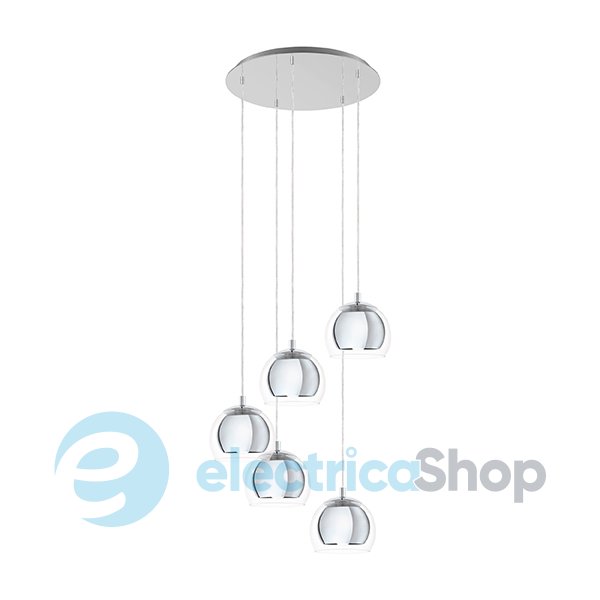 Люстра Eglo 98596 ROCAMAR 1 із трендової колекції Егло матиме гарний вигляд в сучасних інтер'єрах. Арматура підвісу виготовлена із сталі, плафони – зі скла.