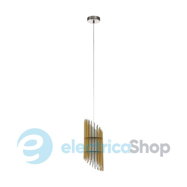 Підвісний світильник AGREDA 33548 австрійського бренду EGLO стане справжньою прикрасою сучасного інтер'єру. Виготовлений зі сталі з матовим нікелевим покриттям, а плафон із планок світлого дерева зі скошеним кінцем.