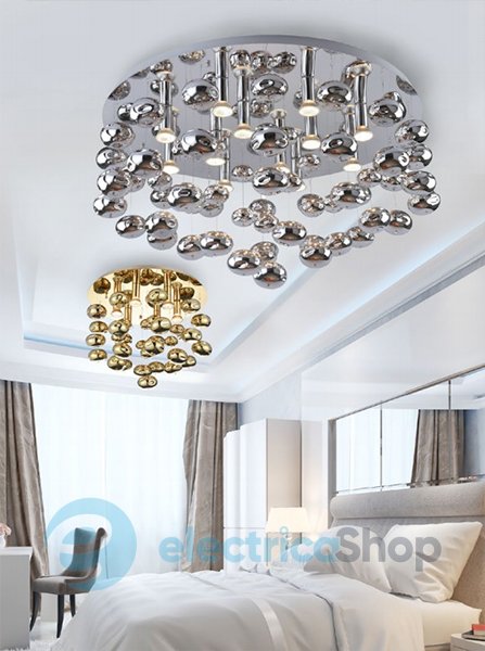 Люстра AZzardo Luvia AZ3072 стане справжньою окрасою для сучасного інтер'єру. Виготовлена з міцного металу, фініш кольору золото. Декоративні підвіски зі скла з покриттям під золото. Для даної моделі використовуються тільки LED-лампи.