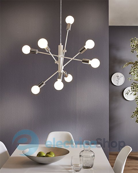 Люстра на штанзі GRADOLI 98017 австрійського бренду Eglo™ стане справжньою окрасою для сучасного інтер'єру, пасуватиме до стилю лофт та модерн. Виготовлена зі сталі, гарно поєднується з лампами Едісона.