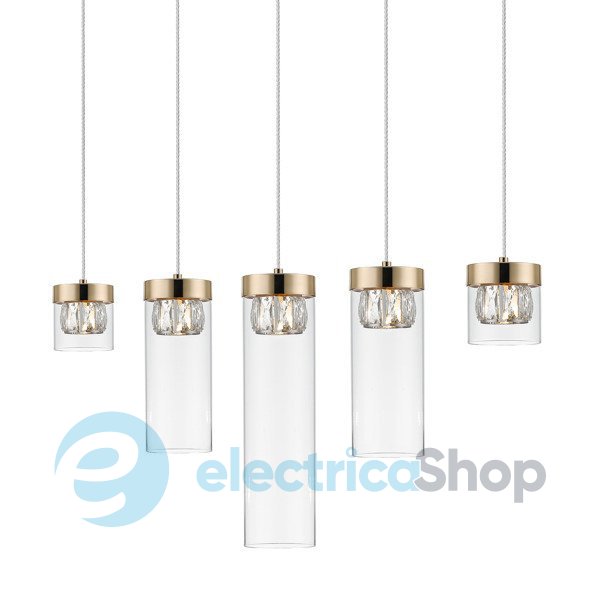 Люстра Zuma GEM P0389-05E-F7AC матиме гарний вигляд у сучасному інтер'єрі. Виготовлена з металу та скла, оздоблення під золото. Максимальна висота підвісу – 162 см.