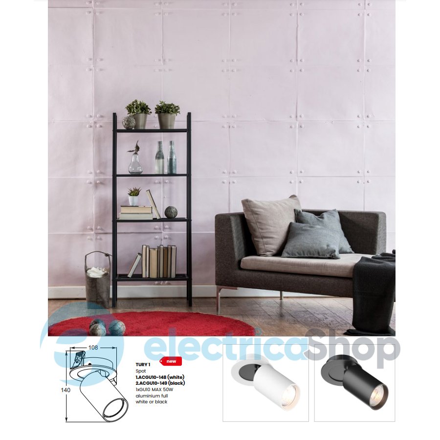 Точковий світильник Zuma TURY 1 ACGU10-148 матиме гарний вигляд у сучасному інтер'єрі. Виготовлений з якісного алюмінію, колір плафона – білий.