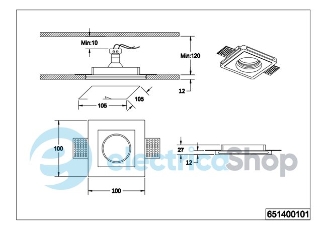 Точковий врізний світильник TRIO TATRA 651400101 виготовлений з гіпсу, може бути пофарбований в будь-який колір, що дає простір для дизайнерських ідей. Підійде для використання в житлових приміщеннях: кухні, вітальні або спальні. Також можливе використання в громадських просторах – кафе, ресторанах, офісах.