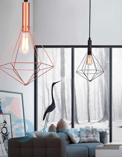 Підвісний світильник AZzardo Diamond 1 AZ2140 copper матиме гарний вигляд у сучасних та лофт-інтер'єрах. Виготовлений з металу, оздоблення чорного кольору. Стане чудовим дизайнерським акцентом в оформленні приміщення. Добре поєднується з декоративною лампою Едісона.