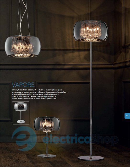 Настільна лампа TRIO VAPORE 511210306 стане справжньою окрасою для сучасного інтер'єру, створить гарні світлові акценти. Виготовлена зі скла, прикрашена витонченими підвісками. Вимикач на шнурі.