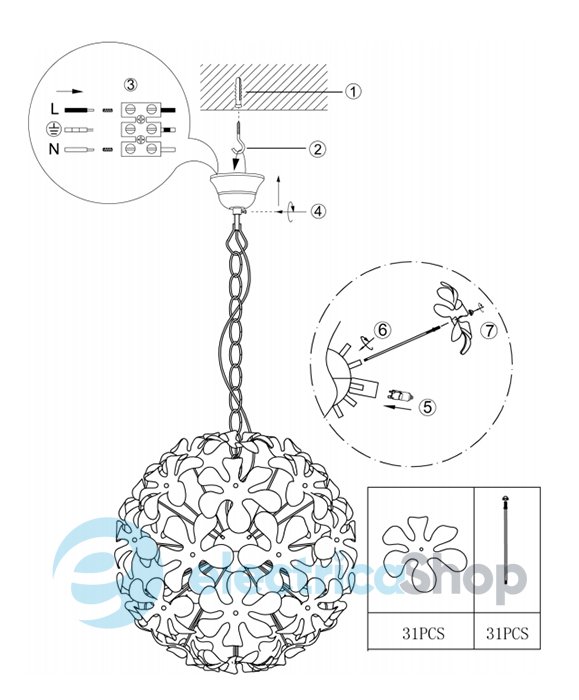 - Призначення: Інтер'єрний світильник/люстра