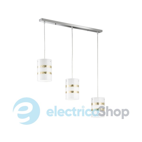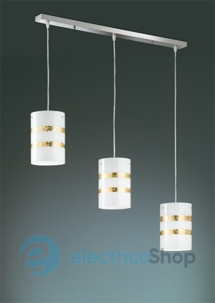 Підвісний світильник TRIO NIKOSIA 308700379 чудово впишеться в сучасний інтер'єр, підійде для приміщень у стилі модерн. Арматура виготовлена з металу, на скляних плафонах золотистий акцент. Висота підвісу – 1500 мм.