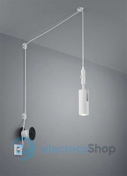 Підвісний світильник TRIO Carla 305470131 – ідеальне доповнення для стилю лофт та просто сучасних інтер'єрів. Дизайн світильника дозволяє розташувати його в будь-якому зручному місці, оскільки він має часткову фіксацію на стіні, а довжина кабелю може регулюватись. Виготовлений з металу у покритті матовий білий.
