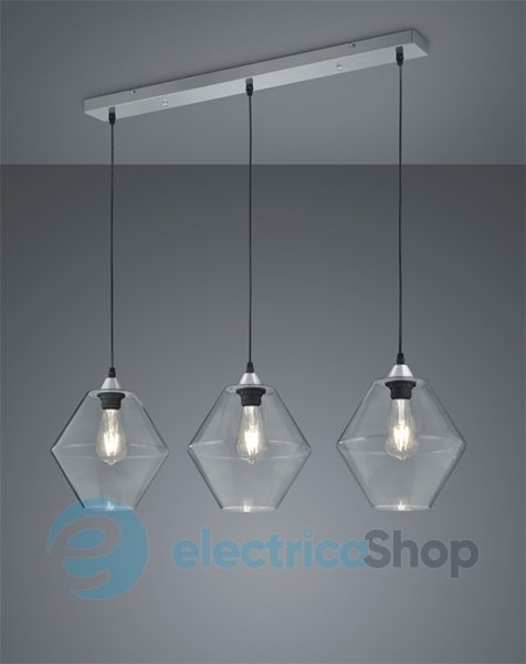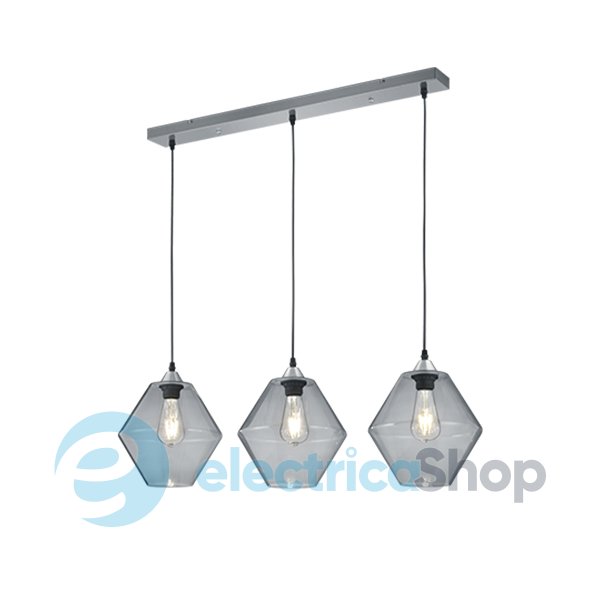 Підвісний світильник TRIO TRENTO R30263052 чудово впишеться в сучасний інтер'єр, підійде для приміщень у стилі лофт та модерн. Арматура виготовлена з металу, скляні плафони мають чітку геометричну форму. Добре поєднується з декоративними лампами Едісона. Висота підвісу – 1500 мм.