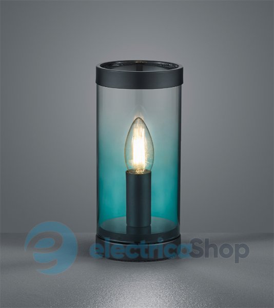 Настільна лампа TRIO COSY R50001019 має креативний дизайн та гармонійно впишеться у приміщення із сучасним ремонтом або в дитячі кімнати. Плафон має форму циліндра з бірюзовим напиленням, де всередині розташована свічка. Такий світильник добре поєднується з лампою-свічкою, її використання зробить композиції цілісною.