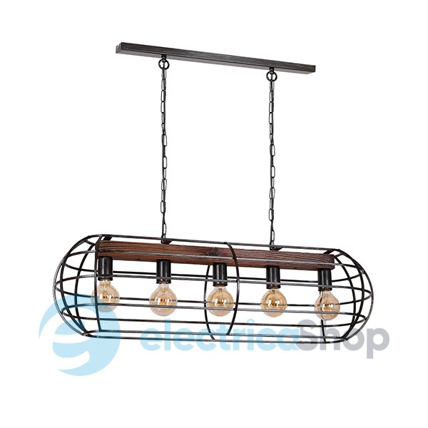 Підвісний світильник 1253 Luminex Vigo поєднує в собі стиль та модний дизайн, він створений для лофт-приміщень та стане чудовим доповненням для житлових кімнат або громадських просторів. Виготовлений з металу під кований виріб, доповнений деревом у кольорі "венге" – такий предмет інтер'єру не залишиться непоміченим. Завершений образ створять лампи Едісона.