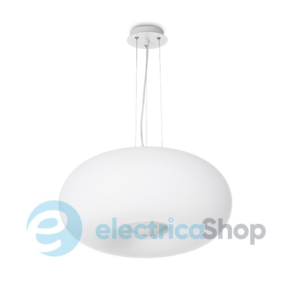Підвісний світильник Ideal Lux ULISSE SP3 D52 098616 підкреслить індивідуальність вашої оселі, матиме чудовий вигляд у сучасних інтер'єрах. Металева арматура вкрита білою емаллю. Плафон виготовлений з дутого труєного скла. Висоту підвісу можна регулювати – 45-115 см.