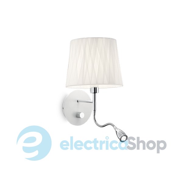 Бра Ideal Lux EFFETTI AP2 132976 – це декоративний освітлювальний прилад із металевої основи та абажура з текстильними смужками. Має спеціальну рухому лампу для читання або нічного підсвічування. На корпусі є вимикач, що дозволяє ввімкнути джерела світла разом або окремо. Гарно поєднується з інтер'єром у світлих пастельних відтінках.