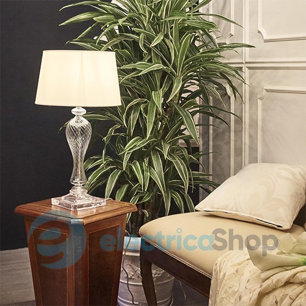 Настільна лампа Ideal Lux FORCOLA TL1 142593 матиме чудовий вигляд як у сучасних, так і в класичних інтер'єрах. Арматура з металу кольору хром, основа з дутого прозорого скла ручної роботи. Абажур з ПВХ, покритий тканиною, створює м'яке та затишне світло, яке підійде як для відпочинку, так і для роботи.