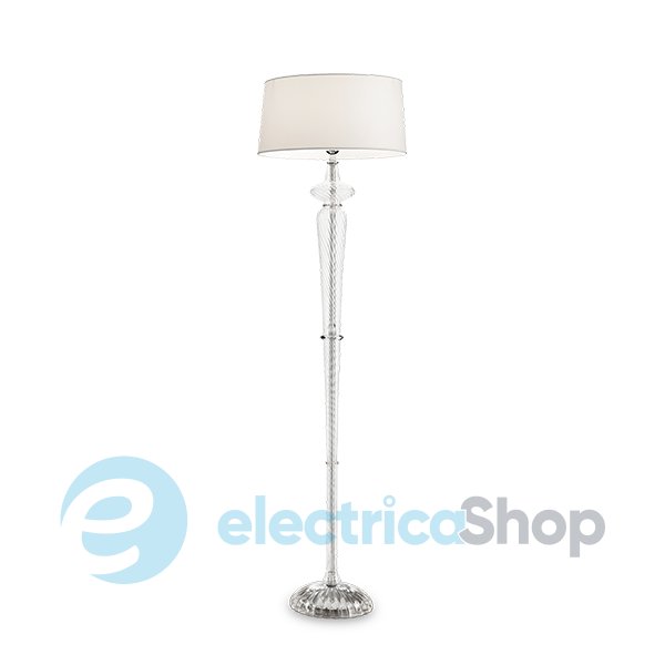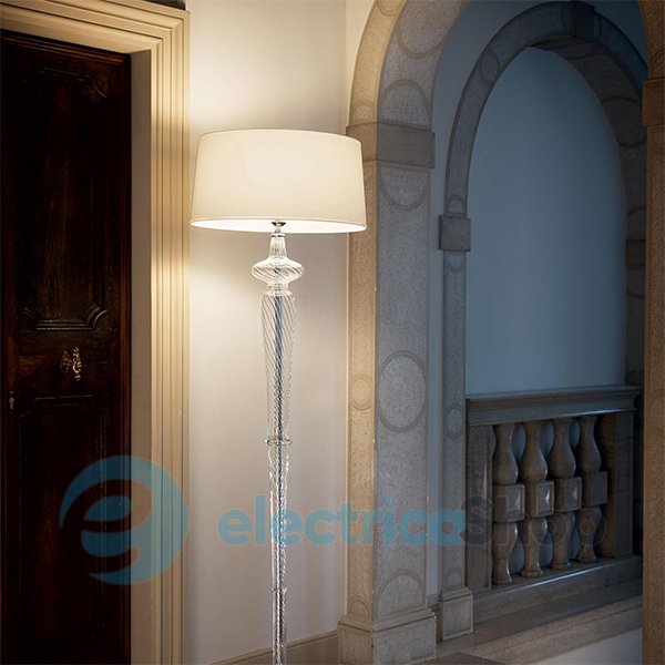 Торшер Ideal Lux FORCOLA PT1 142616 матиме чудовий вигляд як у сучасних, так і в класичних інтер'єрах. Арматура з металу кольору хром, основа з дутого прозорого скла ручної роботи. Абажур з ПВХ, покритий тканиною, створює м'яке та затишне світло, яке підійде як для відпочинку, так і для роботи.