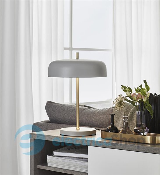 Настільна лампа MARKSLOJD Caen 107922 матиме гарний вигляд у сучасному інтер'єрі, підійде для стилістики модерн. Стильне оформлення не перевантажує інтер'єр і створює гарний акцент. Арматура металева з покриттям під античну латунь, плафон сірого кольору. Довжина кабелю – 2 м, вимикач на шнурі.