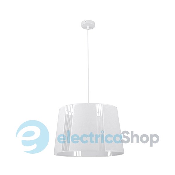 Підвісний світильник TK-Lighting CARMEN WHITE 1776 виготовлений з металу та прикрашений текстильним абажуром оригінального дизайну. Завдяки декоративним отворам в тканині створюються гарні світлові ефекти на поверхнях. Гармонійно сприймається як з однотонними, так і з кольоровими інтер'єрами. Можна розмістити в житлових і громадських просторах – ресторанах, барах, готелях. Висота світильника регулюється.