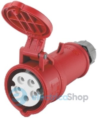Кабельна розетка CEE-типу MENNEKES серії AM-TOP 16А 5п 400В зі ступенем захисту IP44. Розетка AM-TOP завдяки цільному відлитому корпусу має клас захисту IP44 і тому непроникна для бризок води та пилу. Ця розетка має 5 контактів (3 фази + нуль + земля). Положення контакту заземлення – на 6 годин. Контакти стандартні, з латуні. Підключення кабелю – через гвинтові клеми. Кабельний ввід з гумовим ущільненням забезпечує розвантаження натягу та захист від перегинання кабелю. Країна виробництва – Німеччина.