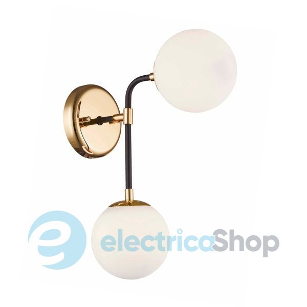 Бра Zuma Line RIANO W0454-02A-SDAA стане чудовим рішенням для приміщень, оформлених у стилі модерн та лофт. Арматура виготовлена з металу в золотистому відтінку, плафони скляні опалові.