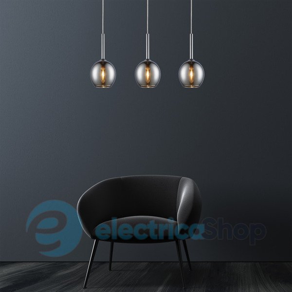Підвісний світильник Zuma Line MONIC MD1629-3A Chrome матиме гарний вигляд у сучасному інтер'єрі, підійде для стилістики модерн, лофт або вінтаж. Виготовлений з металу та димчастого скла, висота підвісу – 126 см.