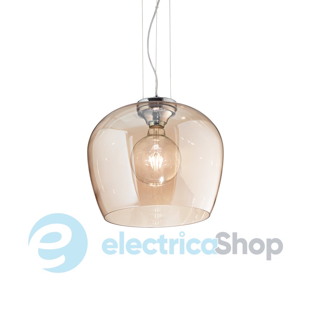 Підвісний світильник Ideal Lux BLOSSOM SP1 241524 матиме гарний вигляд у сучасних інтер'єрах, особливо в стилі лофт і модерн. Арматура виготовлена з металу, плафон – із дутого прозорого скла з бурштиновим покриттям. Висота підвісу регулюється – 34-243 см.