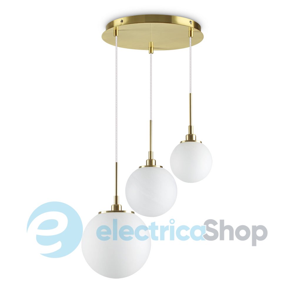 Підвісний світильник Ideal Lux GRAPE SP3 241340 підкреслить індивідуальність вашої оселі, матиме чудовий вигляд у сучасних інтер'єрах. Арматура виготовлена з металу кольору латунь, плафони – з дутого білого скла з матовими смугами. Висота підвісу регулюється – 42-180 см.