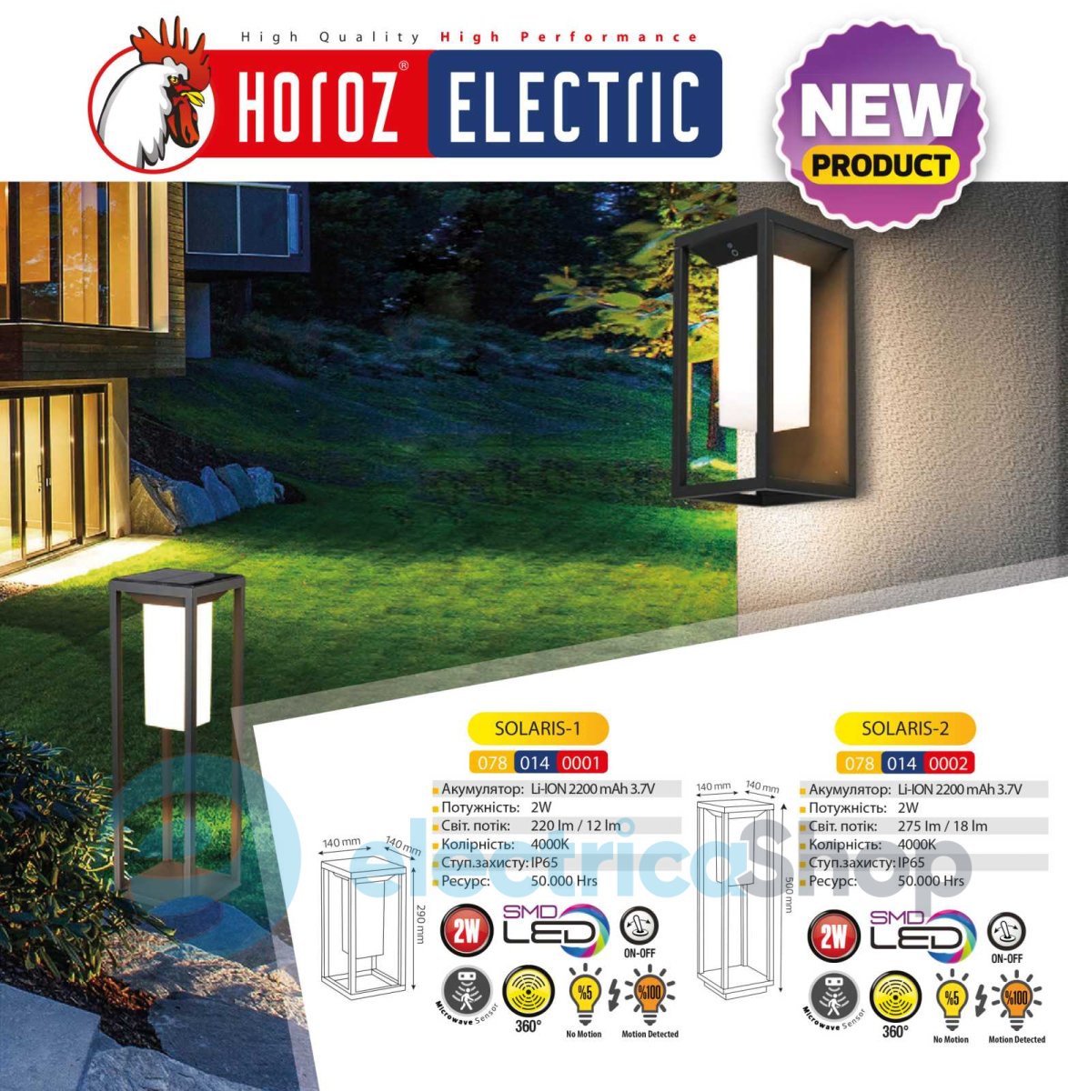 Парковий стовпчик Horoz SOLARIS-2 078-014-0002 призначений для освітлення садових та паркових зон, прибудинкових територій. Виготовлений з алюмінію. Модель оснащена сонячною батареєю і датчиком руху з двома режимами – слабке та сильне (при виявленні руху) світло.