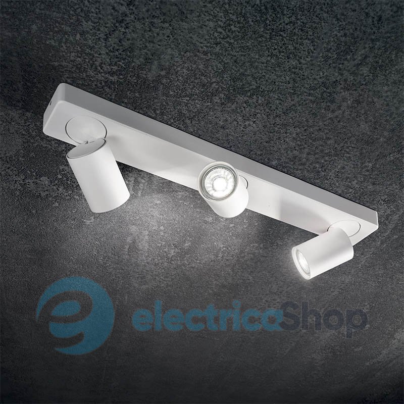 Світильник-спот Ideal Lux RUDY PL3 229065 матиме гарний вигляд у сучасних інтер'єрах, особливо в стилі лофт, мінімалізм та модерн. Виготовлений із литого алюмінію з порошковим покриттям. Напрямок світла можна змінювати завдяки рухомим плафонам.