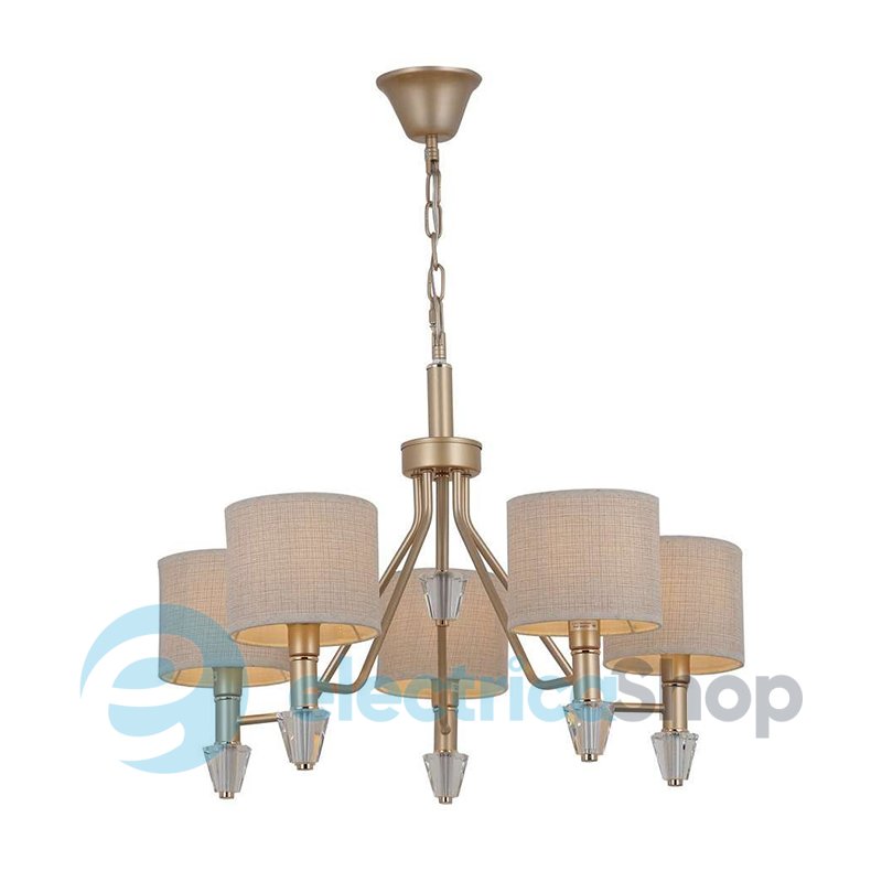 Люстра Blitz Leuchten 1376-45 стане справжньою окрасою для сучасного інтер'єру, чудово впишеться у стилістику модерн або класику. Основа виготовлена з металу та прикрашена кришталевими елементами, абажури текстильні.