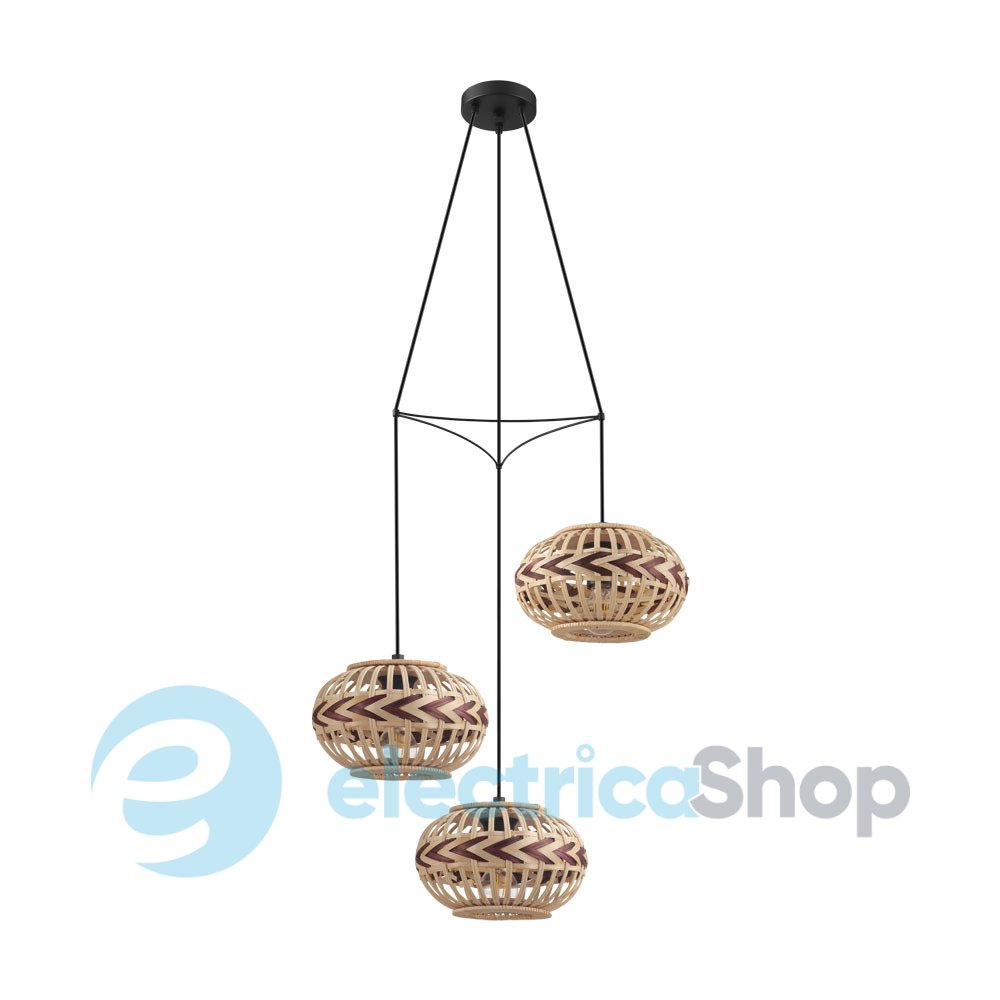 Люстра DONDARRION 43273 австрійського бренду EGLO матиме гарний вигляд у сучасному інтер'єрі, доповнить дизайн будь-якого приміщення. Основа виготовлена зі сталі чорного кольору, плафони – із дерева з акцентом в бордовому відтінку.