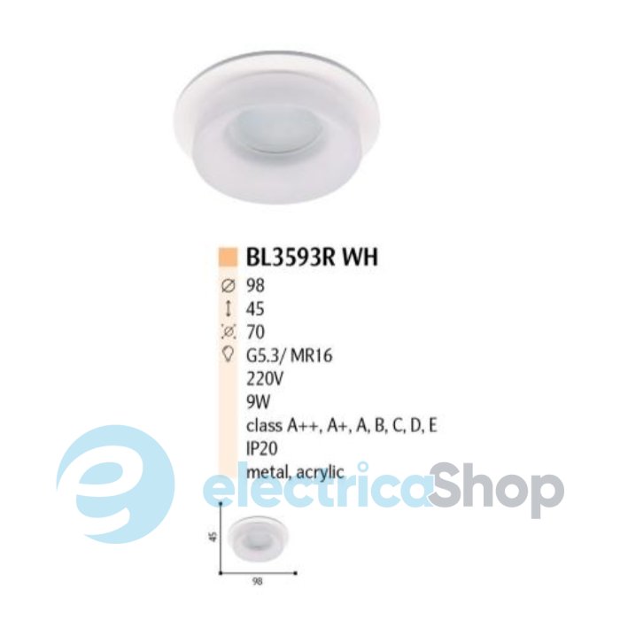Стильний та лаконічний точковий світильник Blitz Leuchten 3593R WH стане справжньою окрасою для сучасного інтер'єру. Виготовлений з металу та акрилу. Тип лампи – G5.3/MR16, максимально 9W.