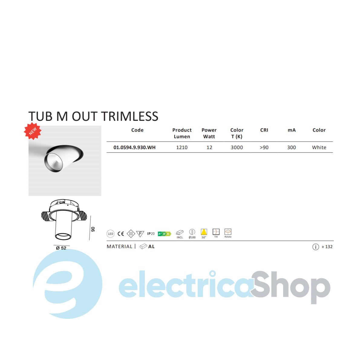 Світильник вбудований поворотний LTX TUB M OUT TRIMLESS (01.0594.9.930.WH) – це універсальний освітлювальний прилад, який матиме гарний вигляд в інтер'єрах офісів, кав'ярень, магазинів, бутіків та інших комерційних і житлових приміщень, оформлених в сучасному стилі.