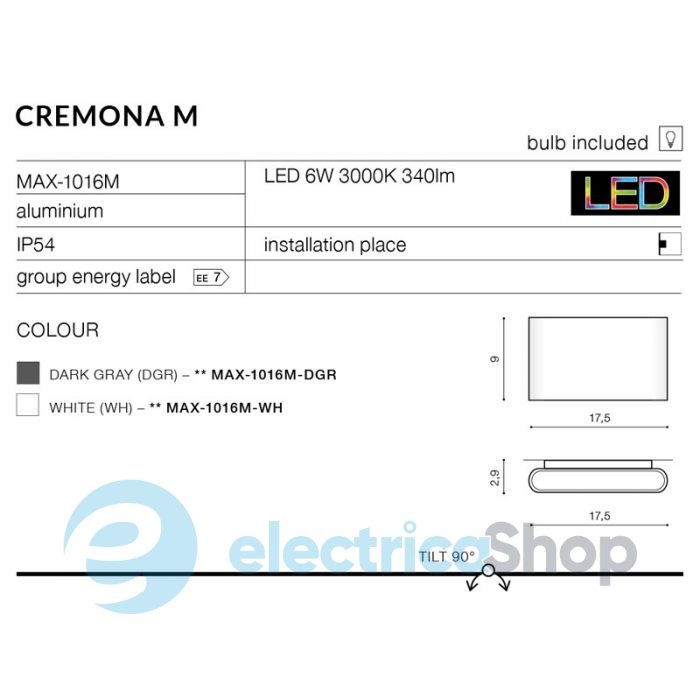 - Призначення: Для підсвічування фасаду, Декоративні, Для дачі, Для заміського будинку, Для альтанки, Для ганку
