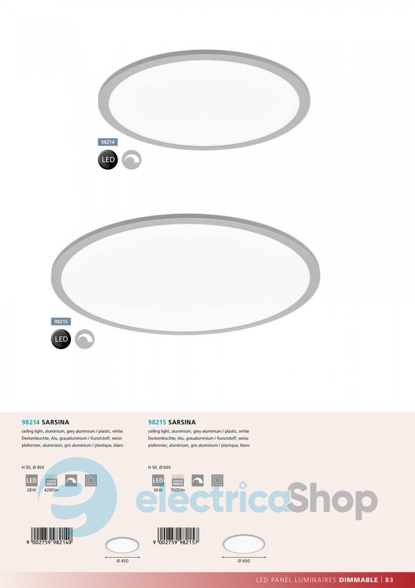 Стельовий світильник EGLO SARSINA 98214 добре впишеться в інтер'єр, оформлений в сучасному стилі, допоможе якісно освітити приміщення. Є функція димера. Рамка для кріплення в комплекті.