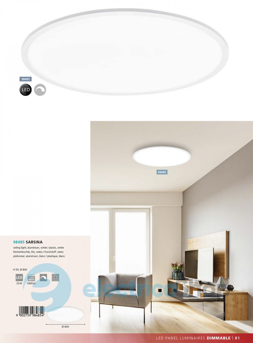 Стельовий світильник EGLO 98485 SARSINA добре впишеться в інтер'єр, оформлений в сучасному стилі, допоможе якісно освітити приміщення. Є функція димера. Рамка для кріплення в комплекті.