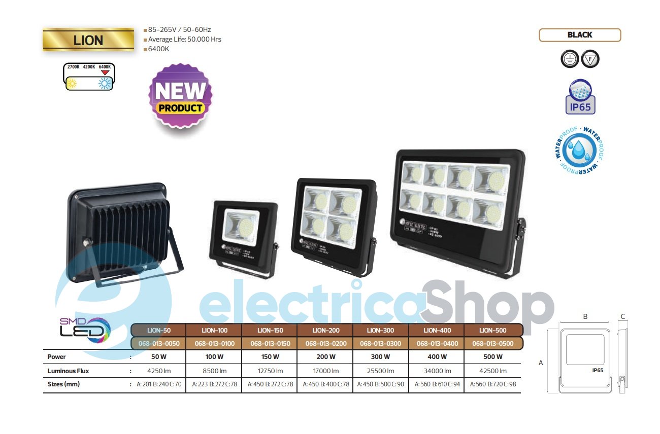 Світлодіодний прожектор Horoz LION-100 призначений для зовнішнього освітлення (садів, фасадів будівель, гаражів, автостоянок, промислових зон тощо). Забезпечує рівномірний світловий потік та максимальний рівень освітлення при мінімальних витратах електроенергії. Міцний корпус з литого алюмінію з високим рівнем пиловологозахисту має антикорозійне покриття із порошкової фарби. Прожектор можна використовувати при широкому діапазоні температур.