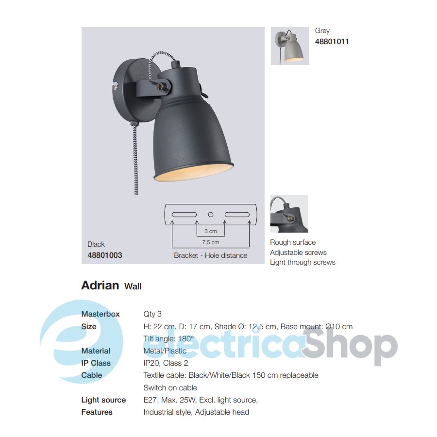 Бра Nordlux ADRIAN 48801003 матиме гарний вигляд у сучасному інтер'єрі, доповнить простір біля ліжка або робочої зони, місця для читання. Чудово поєднується зі стилістикою лофт та кантрі. Довжина кабелю – 1,5 м, вимикач на шнурі.