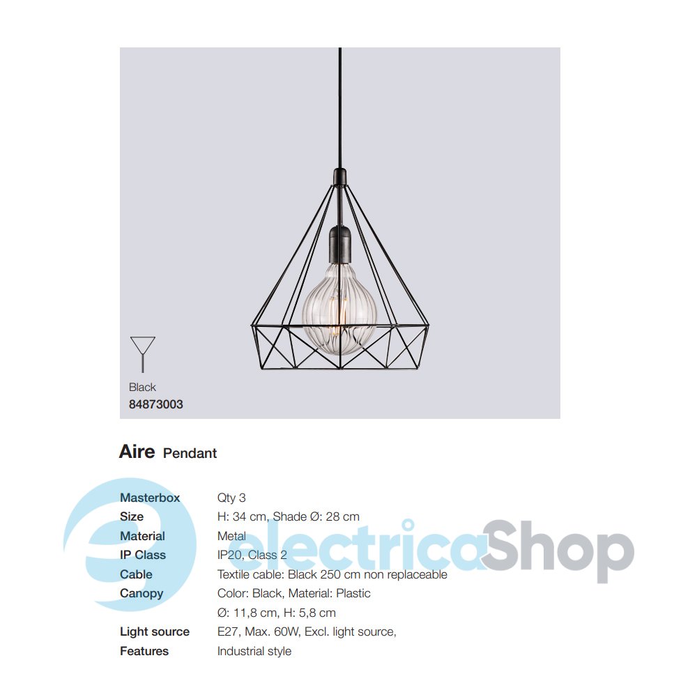 Підвісний світильник Nordlux AIRE 84873003 матиме гарний вигляд у сучасному інтер'єрі, доповнить простір над робочим столом або обідньою зоною. Чудово поєднується з декоративними лампами Едісона. Довжина кабеля – 2,5 м.