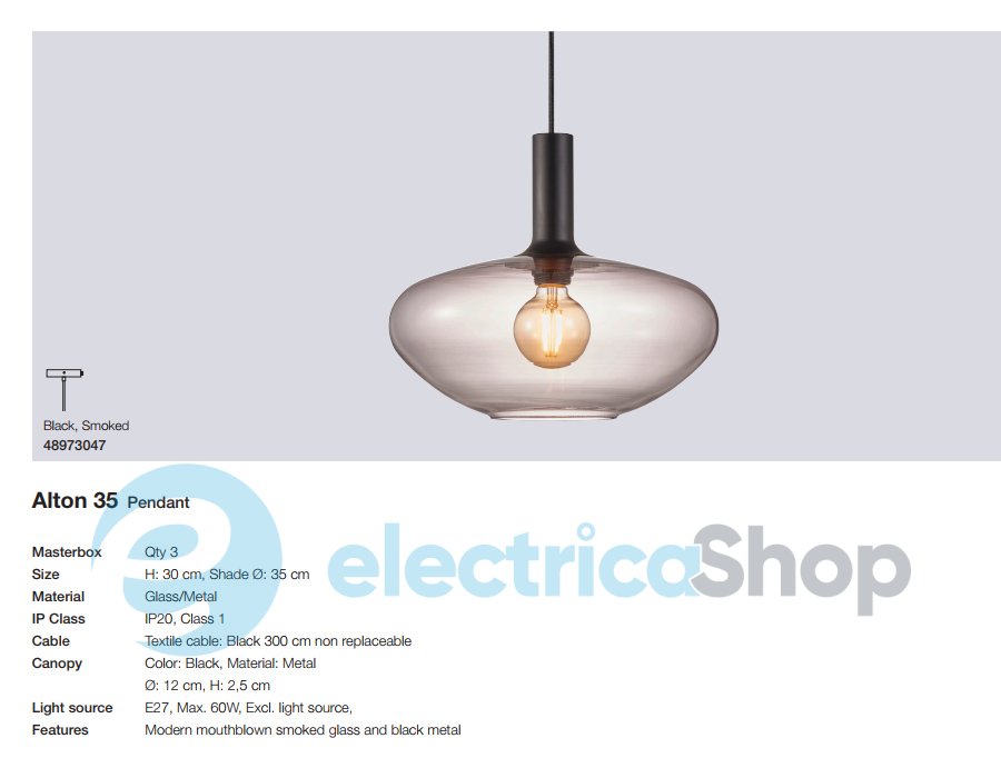 Підвісний світильник Nordlux ALTON 35 48973047 матиме гарний вигляд у сучасному інтер'єрі, доповнить простір над робочим столом або обідньою зоною. Довжина кабеля – 3 м.