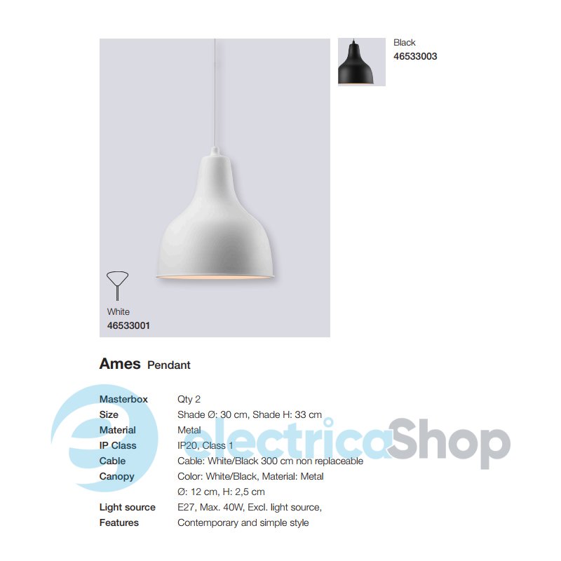 Підвісний світильник Nordlux AMES 46533001 матиме гарний вигляд у сучасному інтер'єрі, доповнить простір над робочим столом або обідньою зоною. Чудово поєднується зі стилістикою модерн та мінімалізм. Довжина кабеля – 3 м.