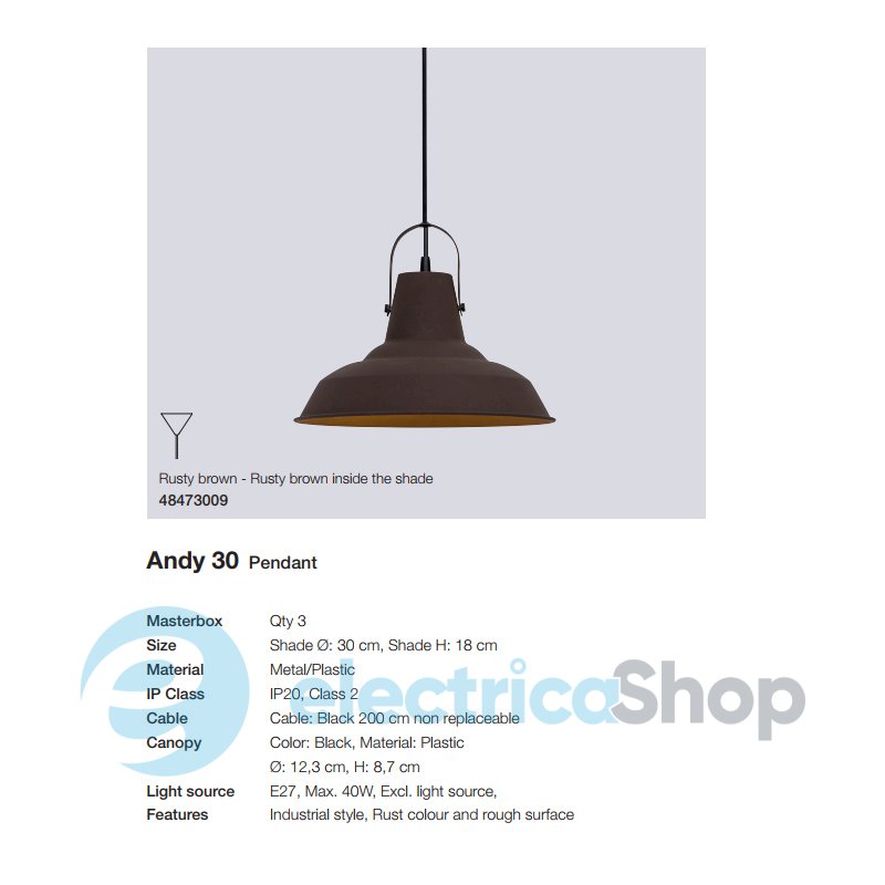 Підвісний світильник Nordlux ANDY 30 48473009 матиме гарний вигляд у сучасному інтер'єрі, доповнить простір над робочим столом або обідньою зоною. Чудово поєднується зі стилістикою лофт, індастріал. Довжина кабеля – 2 м.