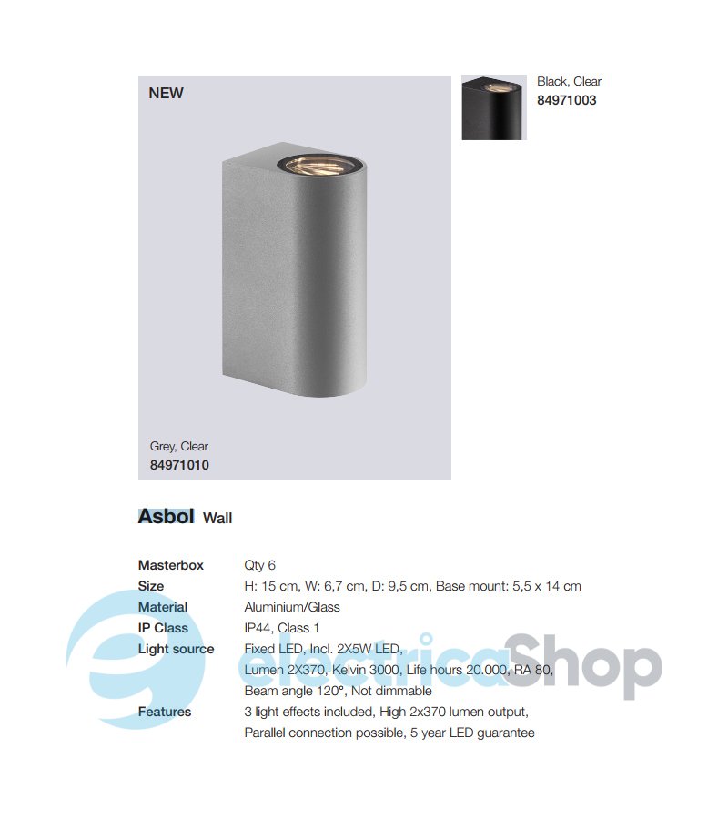 Вуличний світильник Nordlux ASBOL 84971010 LED виготовлений з алюмінію та пластика, світло в даній моделі спрямоване вгору й вниз. Стане чудовим рішенням для підсвічування фасадів будівель. Має високий ступінь пиловологозахисту IP44.