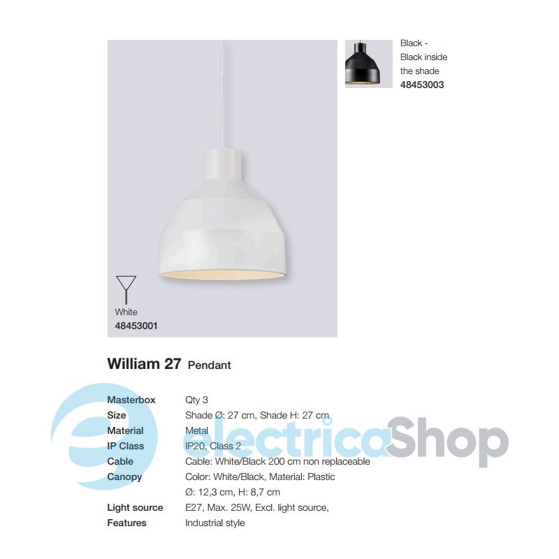 Підвісний світильник Nordlux WILLIAM 27 48453003 матиме гарний вигляд у сучасному інтер'єрі, доповнить простір над робочим столом або обідньою зоною. Чудово поєднується зі стилістикою мінімалізм та модерн. Довжина кабелю – 2 м.