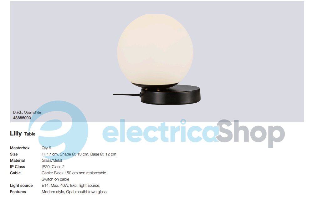 Настільна лампа Nordlux LILLY 48885003 матиме гарний вигляд у сучасному інтер'єрі, доповнить простір вітальні або спальні. Чудово поєднується зі стилістикою модерн. Довжина кабелю – 1,5 м, вимикач на шнурі.