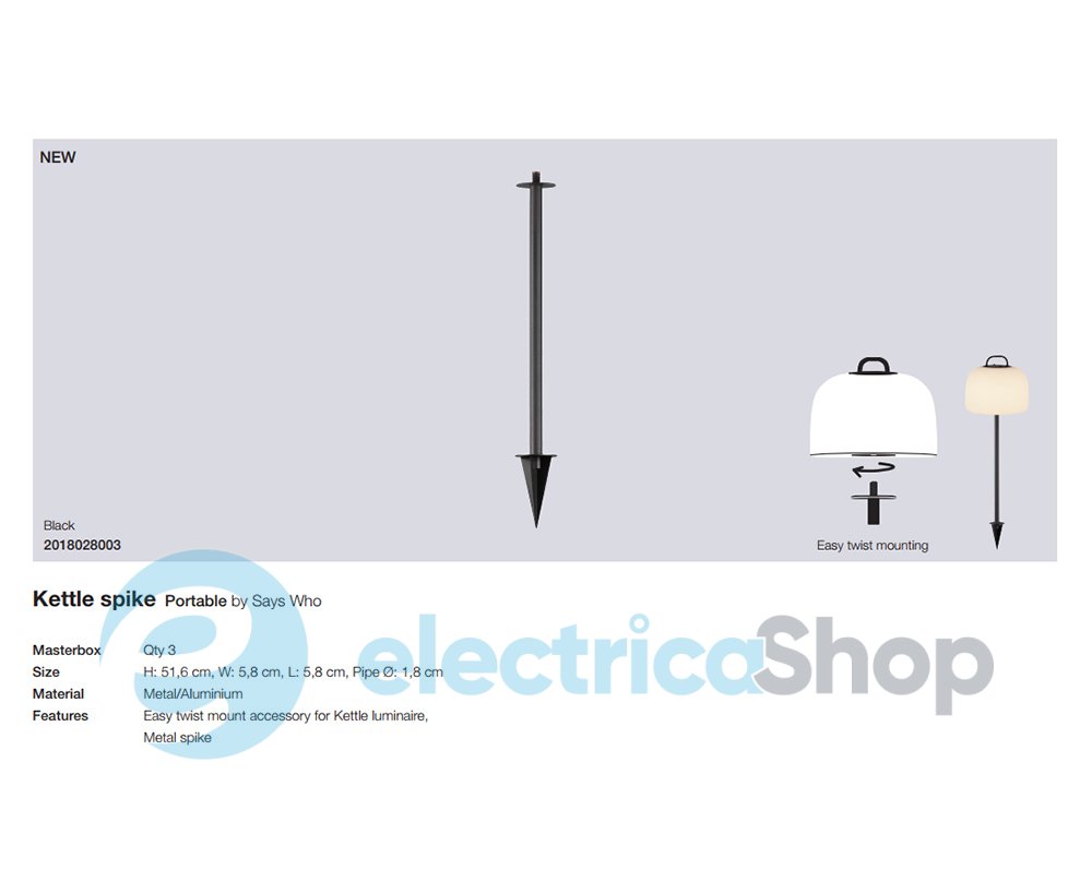 Наконечник для грунту KETTLE SPIKE 2018028003 використовується для створення грунтового світильника. Виготовлений з металу та алюмінію.