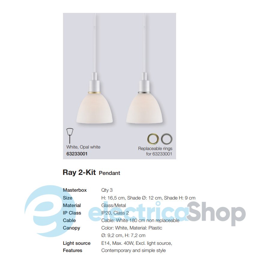 Підвісний світильник Nordlux RAY 63233001 матиме гарний вигляд у сучасному інтер'єрі, доповнить простір. Чудово поєднується зі стилістикою мінімалізм та модерн. Довжина кабелю – 1,8 м. В комплекті змінні декоративні кільця кольору латунь і хром.